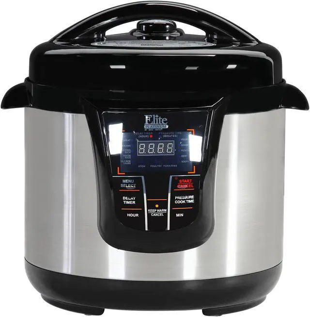 Enjoy nutritious, fast and flavorful cooking with the Elite Platinum 8 Qt. Digital Pressure Cooker. The unique process of pressure cooking allows you to trap steam during the cooking process, thereby, cooking food evenly, sealing in nutrients, and, most important of all, retaining flavor.
