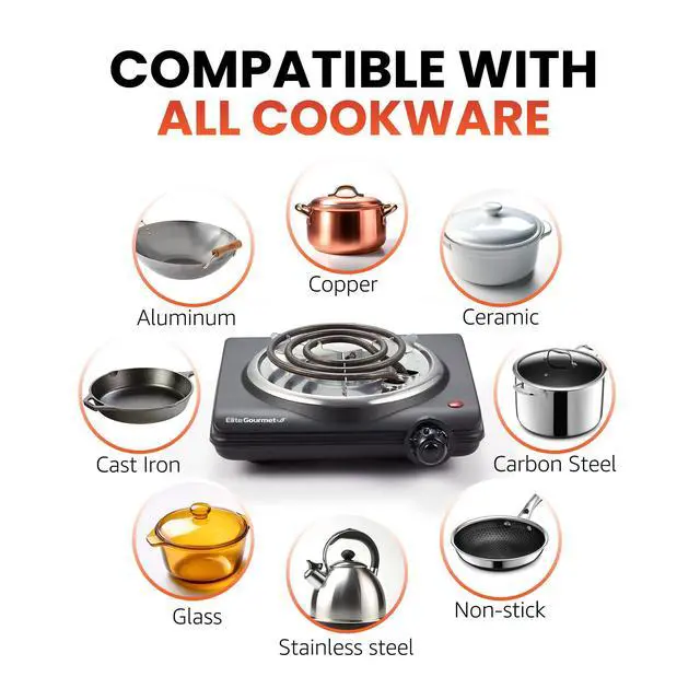 ADJUSTABLE TEMPERATURE CONTROL: Quickly reach & maintain 1 of 6 desired heat settings with the variable temperature knob. You can use it to cook, keep food warm or boil water.