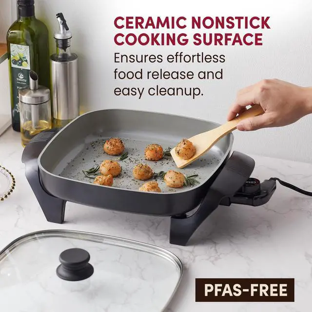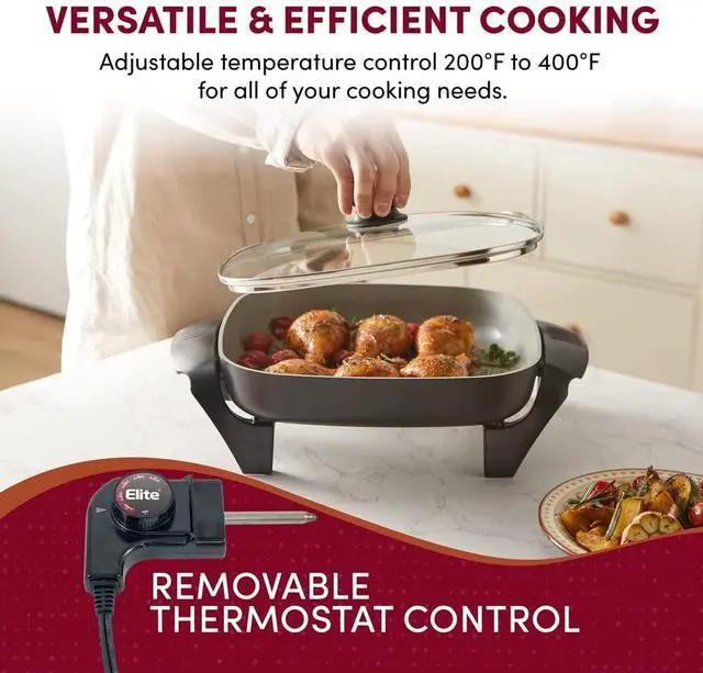 LOCK IN FLAVORS and moisture and view cooking progress with the tempered glass lid. Extra Large 12 x 12 pan dimensions let you cook entire meals for the whole family.