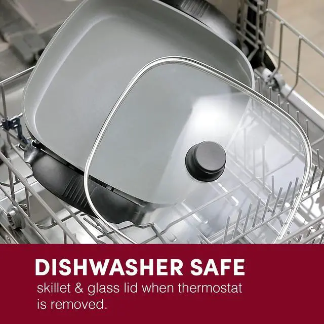 DISHWASHER SAFE and fully immersible in your sink for fast, easy clean-up upon removal of the temperature control probe. Thick cast aluminum body resists rusting or warping for added resilience.