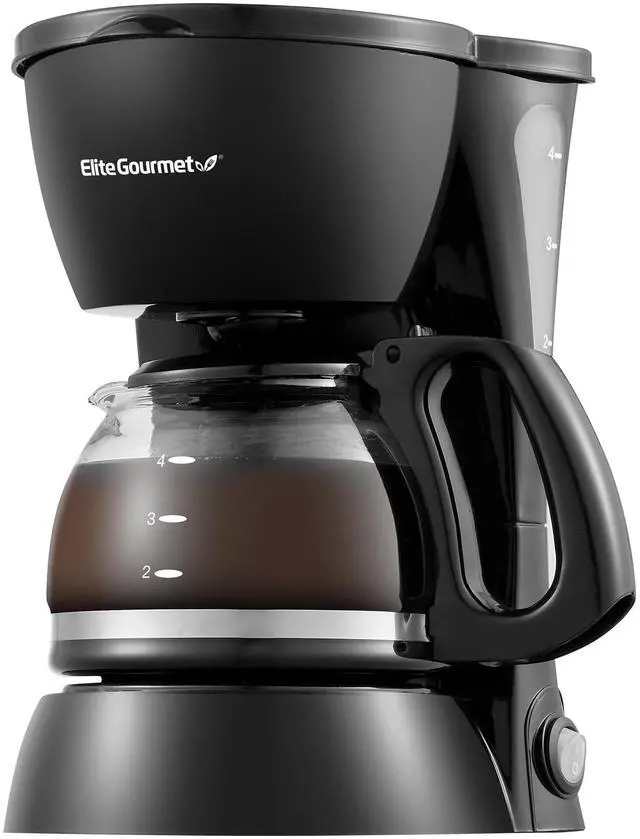 EHC4128 Automatic 4-Cup Brew & Drip Coffee Maker with Pause N Serve, Glass Carafe, Reusable Filter, On/Off Switch, Keep Warm, Water Level Indicator, Black