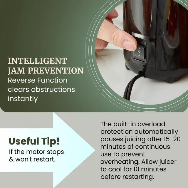 • SLOW COLD PRESS JUICING (70 RPM): Low-speed masticating extraction helps produce smooth juice with less foam and less oxidation than high-speed centrifugal juicers.