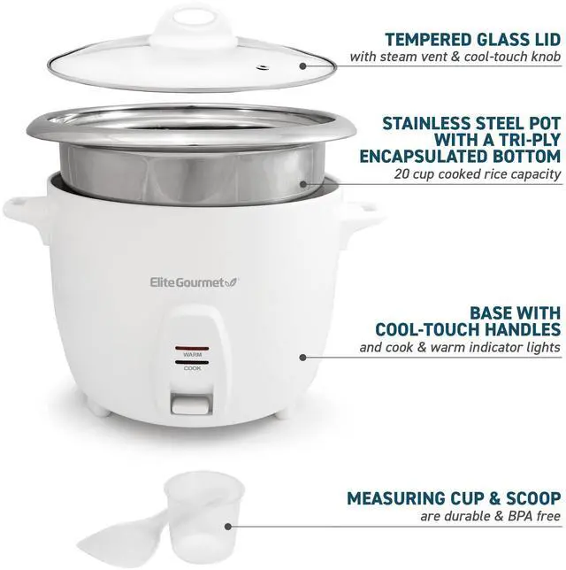 Elite Gourmet 20 Cup Rice Cooker with Stainless Steel Pot