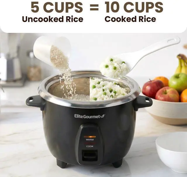 COOK MOUTH-WATERING & FLUFFY RICE EVERY SINGLE TIME without wasting your time over the pot! The Elite Gourmet ERC2001BX professional rice cooker is here to help you cook up to 10 cups (5-cups uncooked) of your favorite jasmine, basmati or brown rice effortlessly! No more waiting for the water to boil, no more watching and guessing if the rice is cooked! Our innovative rice cooker will make your life easier and cooking for your family 100% hassle-free!