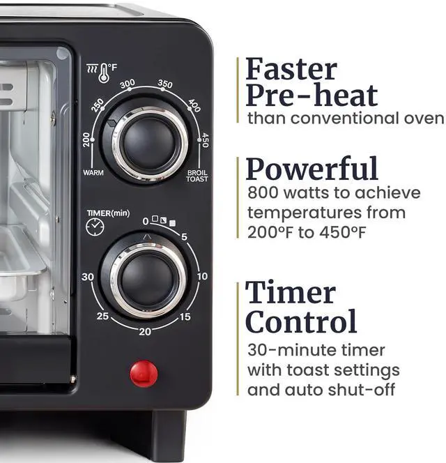 ADJUSTABLE TEMPERATURE CONTROL: Adjust your oven controls between 200F-450F degrees for toasting, baking, roasting & warming.