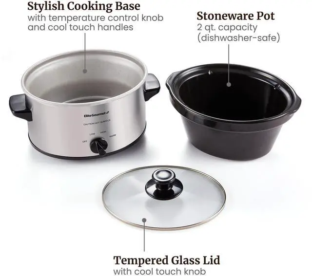 PERSONAL 2 QUART slow cooker makes cooking fork-tender roasts and poultry a breeze. Cool-touch handles and knob protect hands and allow you to safely transport your slow cooker.