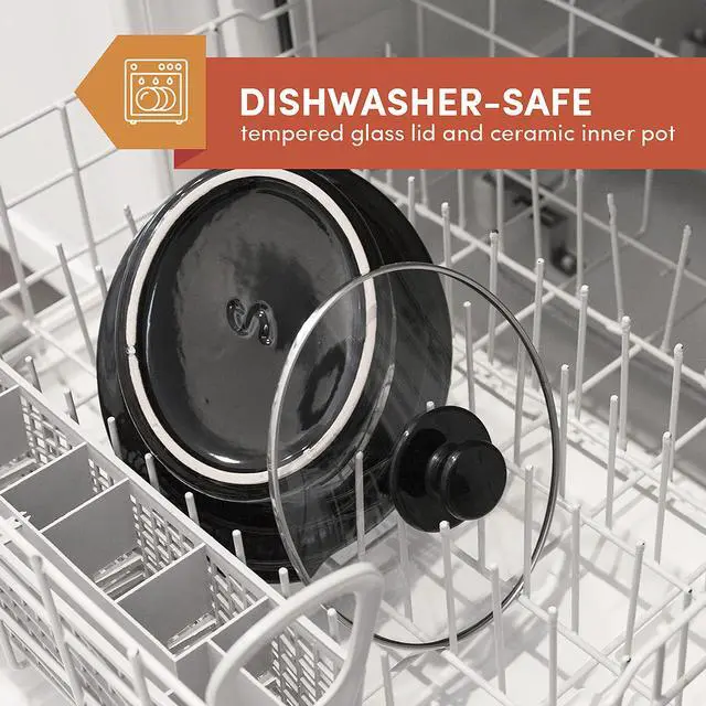 FAST, EASY CLEAN-UP with our dishwasher-safe clear tempered glass lid and removable oval stoneware pot. The exterior heating base can be wiped clean with a damp cloth to maintain its pristine appearance