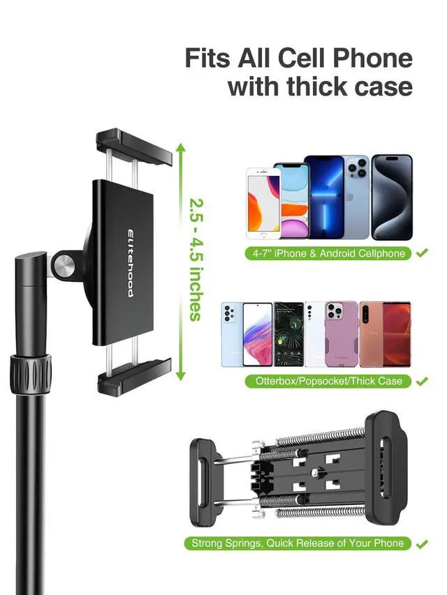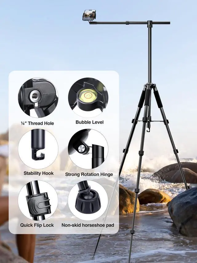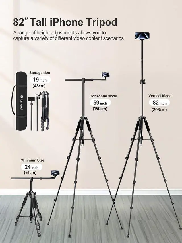 Phone Tripod for Overhead Video Recording Updated Horizontal 59-inch Adjustable Tripod for iPhone with 25in Long Extendable Arm, 360° Rotation iPhone Tripod Stand for Overhead Recording