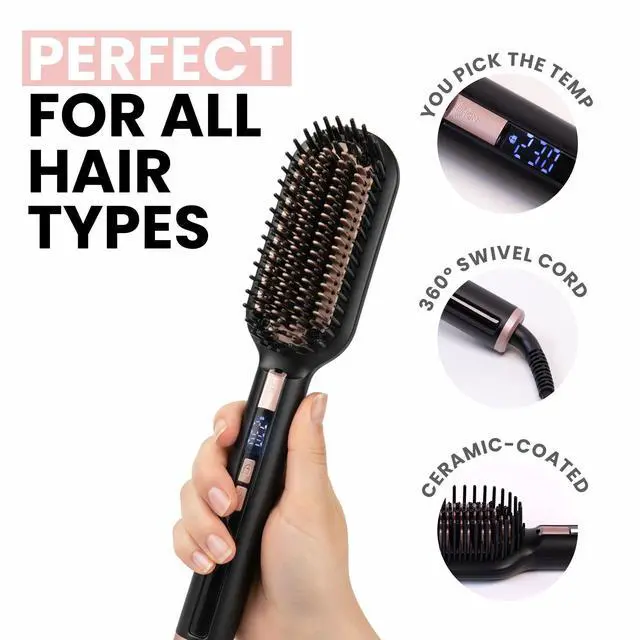 COMBINES BRUSH & FLAT IRON A 2-in-1 electric hair brush that combines a brush and flat iron for quick, even styling with minimal effort