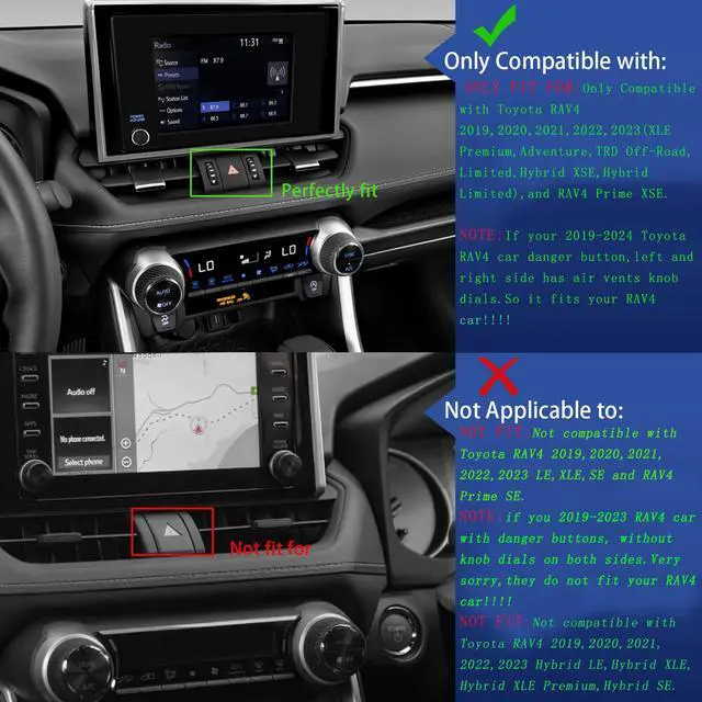 IMPORTANT: Not compatible with Toyota RAV4 2019, 2020, 2021, 2022, 2023 LE, XLE, SE and RAV4 Prime SE.