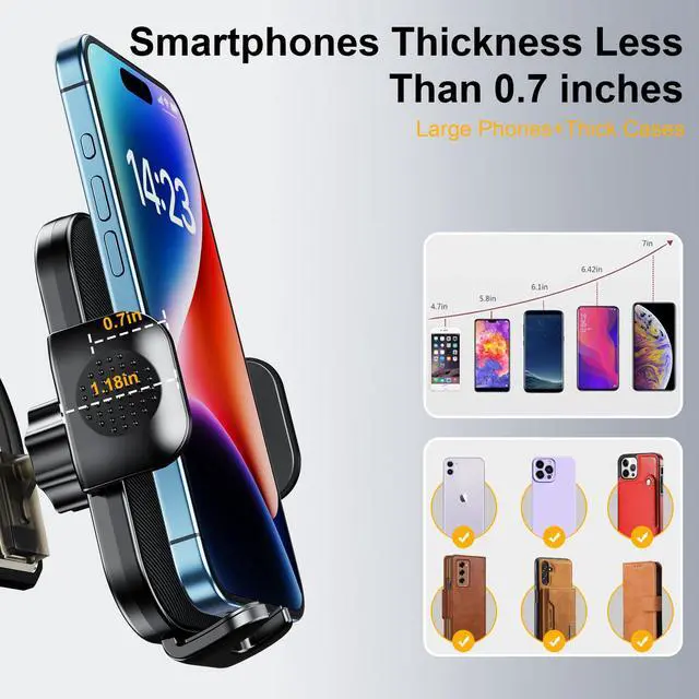 Smart phone holder car compatible with all mobile phones within 4.7-7.2 inches, such as compatible with iPhone 15 14 13 12 11 pro max X XR SE, Galaxy S 22 21 20 10 A21 A12 Note 20 10 9 8, Google Pixel, Moto G, Sony, LG V 30 40, etc.