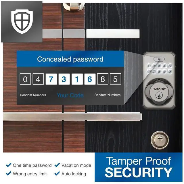 Maintain door security even in the presence of nosy neighbors. If you’re concerned about a compromise, enter random numbers before or after your code to throw off would-be home invaders.