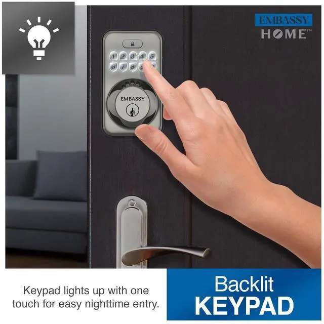 Rest assured that your door locksevery time, with or without your input. Touch the lock button to engage the deadbolt immediately, or let the lock do the work for you at a set time. Program it to lock after anywhere between 10 and 99 seconds.