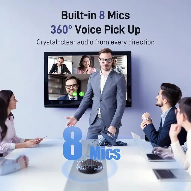 With 8 built-in omni-directional mics that capture sound from all directions.