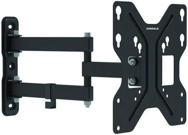 The Emerald Mount articulates in 4 different directions, the 4 direction tilt helps to ensures the best viewing angle. When the mount is completely closed, it stands only 2.3" from the wall, for a low profile and extends out to 15.15". The wall mount is compatible and can support most TVs in the 13"-47" range.