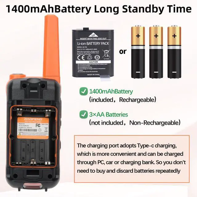 1400mAh large capacity battery, easy to install, sufficient power, can be used for a long time.If your walkie-talkie fails to power on, you need to remove the gasket at the back of the battery and reuse it.