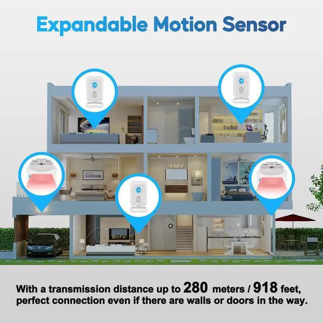 The receiver has been tested in the laboratory to have a transmission distance of up to 280m/918ft in an open area, or 150m/500ft in an indoor area with many walls, doors and windows, is suitable for use in most residential areas.