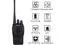 Specifications - RF Rated Power: 5W. - Channel Spacing: 25KHz. - Operated Voltage: 3.7V. - Battery: 1500MAh Li-ion. - Battery Life: About 8 hours. - Frequency Stability: ±2.5ppm. - Operated Temperature: -30°c-+60°c. - Antenna Impedance: 50. Transmitter: RF Power Output: 3W. Modulation: F3E. Spurious Emission: 65dB. FM Noise: -45dB(W) -40dB (N). Audio Distortion: 5%. Transmitting Current: 1.3A. Receiver: Sensitivity (12dB SINAD): 0.20 uV. Selectivity: 55dB/50dB. Intermodulation: 65dB. Adjacent Channel Selectivity: 60dB. Spurious Response: 60dB. Audio Power Output: 1000mW