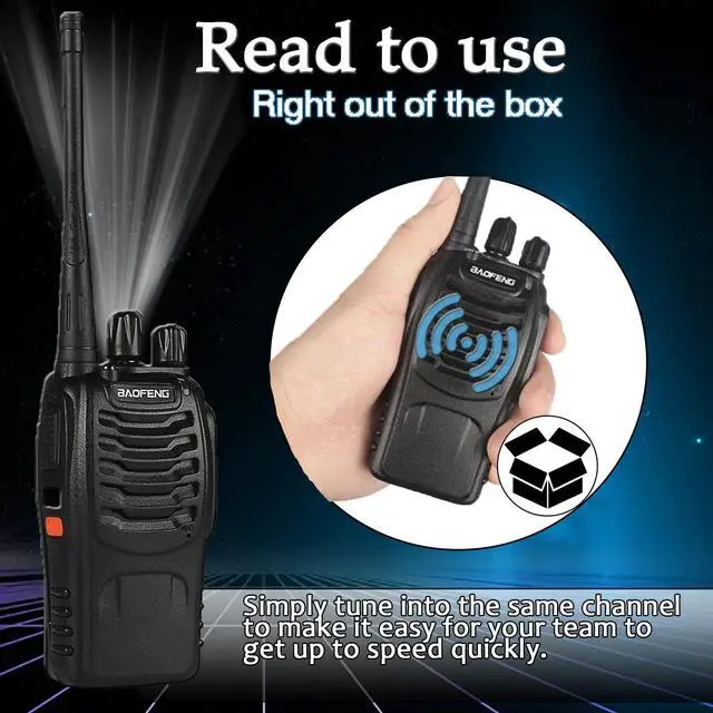 - Battery Durability: Each long distance walkie talkies comes with a 1500mAh rechargeable lithium battery and charging base, which can be fully charged in 3-4 hours. Under normal conditions, the walkie talkies for adults can be used for 8-96 hours on a full charge and up to 8-12 hours of continuous use, the actual time depends on the frequency of use.
