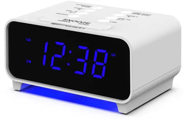 The compact unit boasts a 0.9” easy-to-read LED display with a 4-level brightness dimmer and elegant 2-level LED décor lighting, providing a warm, modern glow that enhances any nightstand or desktop.