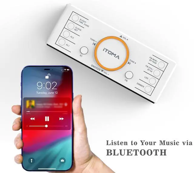 Bluetooth technology ---The iTOMA alarm clock comes with a built-in Bluetooth speaker, you can listen to your favorite music or audio by pairing it with your bluetooth device.