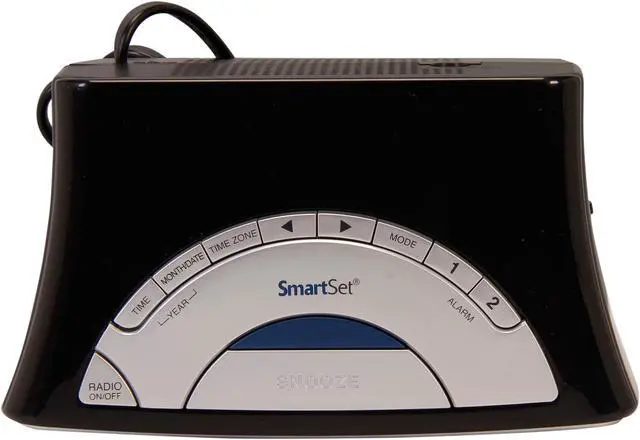 SmartSetSmartSet technology automatically sets this unit to the correct year, month, date, day, and time as soon as you plug it in, and after every power interruption. The clock radio also adjusts itself automatically for daylight saving time and leap years.