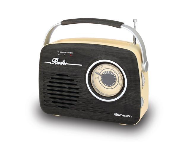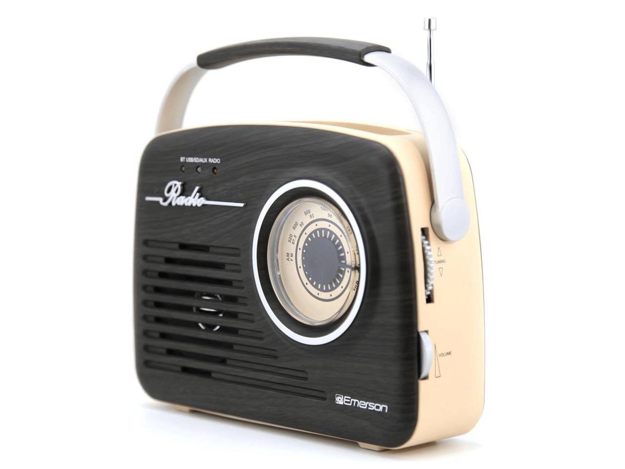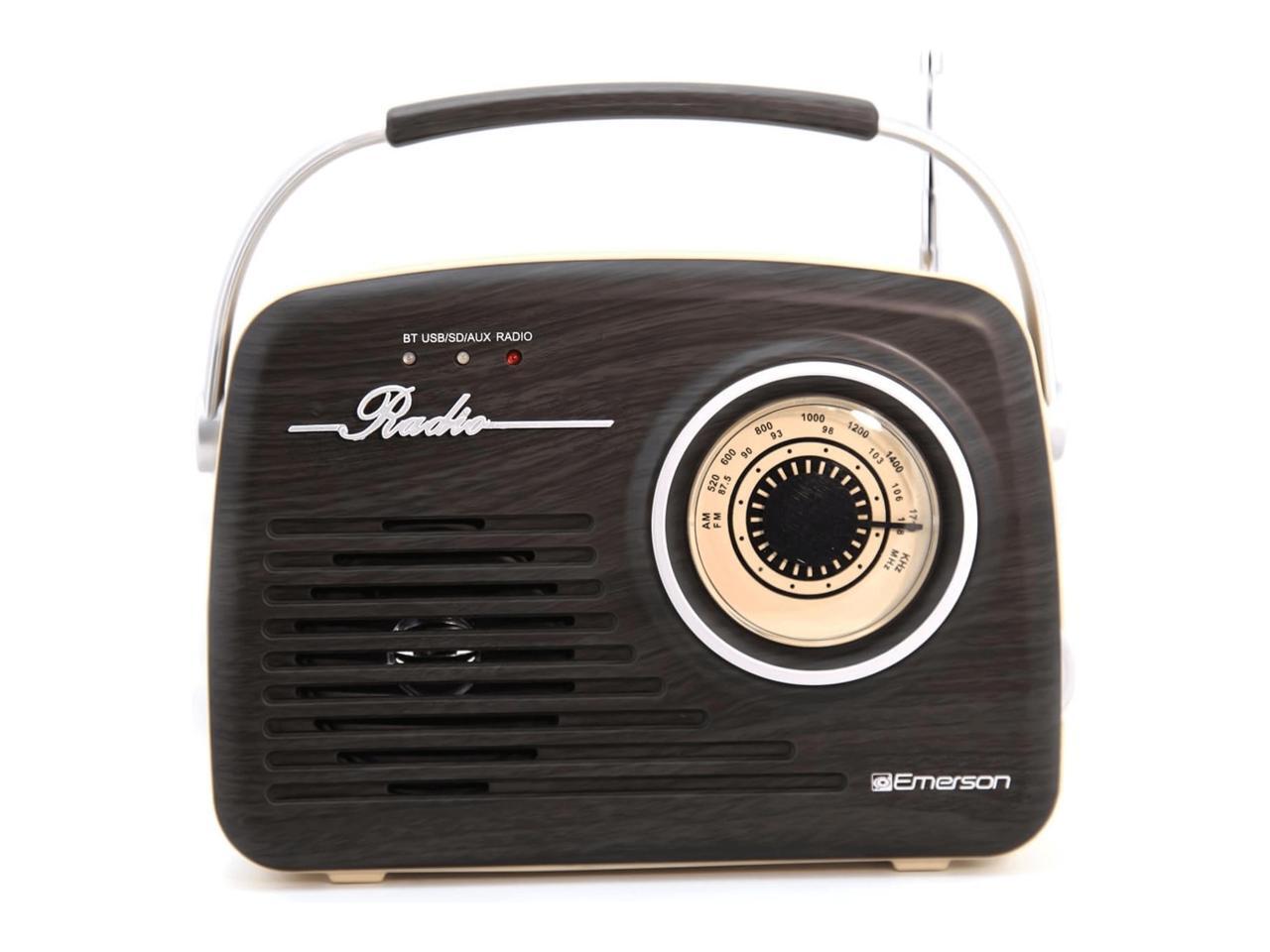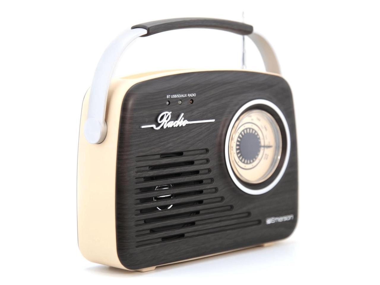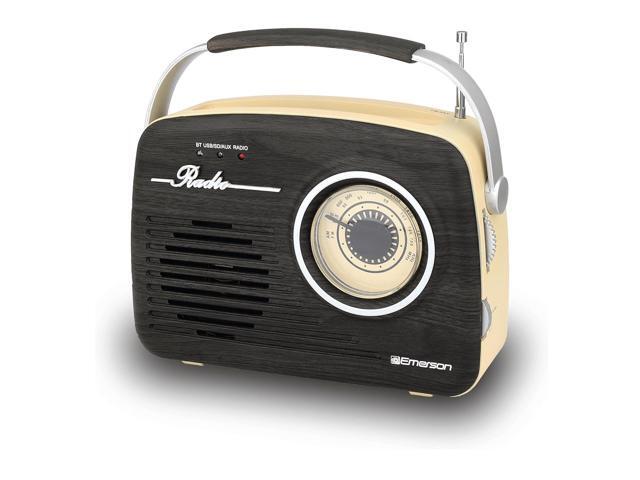 Emerson EAS-3002-ES Portable Retro AM/FM Radio with Built-In Speaker and Rechargeable Battery - Espresso