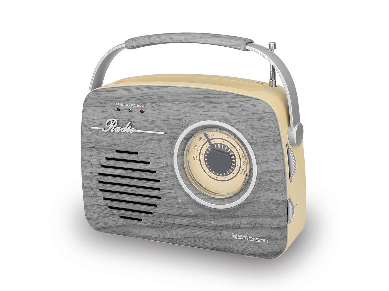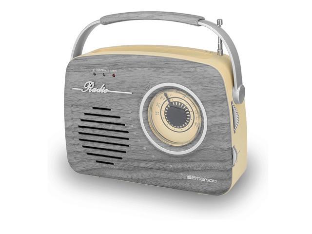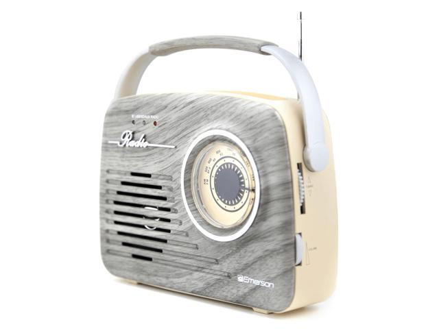 Emerson EAS-3002-GR Portable Retro AM/FM Radio with Built-In Speaker and Rechargeable Battery - Grey