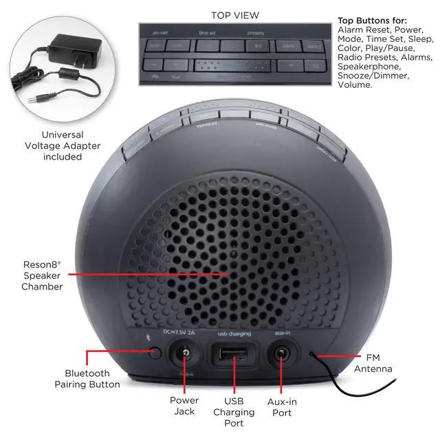 Wake to Bluetooth: Wake to the currently linked Bluetooth device. If no device is detected, the alarm will default to tones.