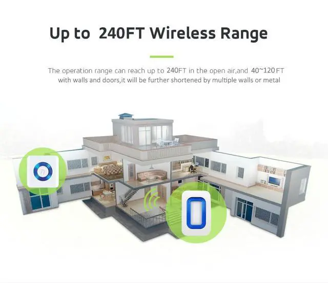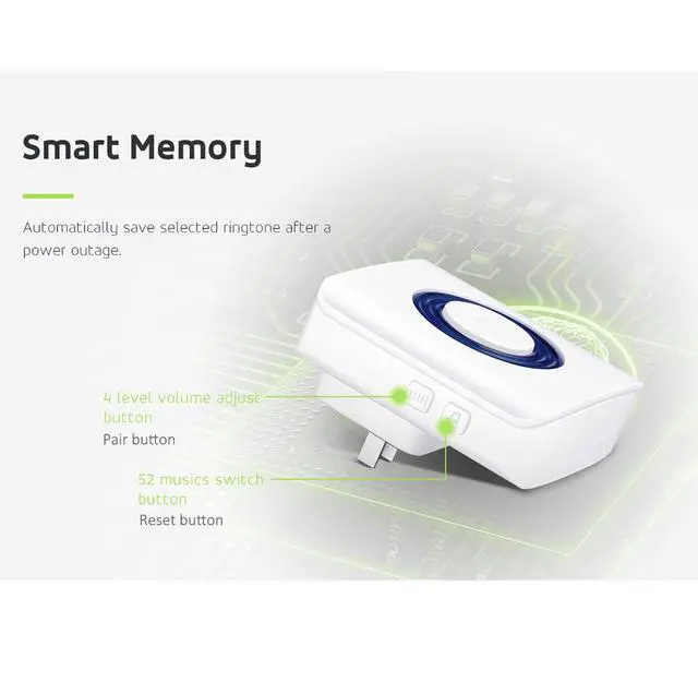 Wireless Plug-in Receiver: Just plug the receiver into any standard 110V outlet. Unique Ringtones with Volume Level, you can personalize your bell with 58 unique ringtones and 5 volume levels.
