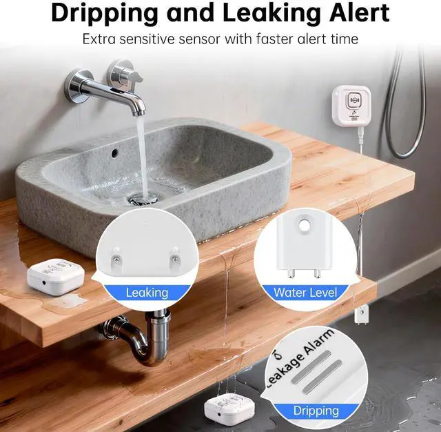 DUAL DETECTION MODES : When water leak detectors for home detects a leak or water level rise. Switch between leak detection mode (default) and water level monitoring mode by plugging and unplugging the 105cm extension probe.