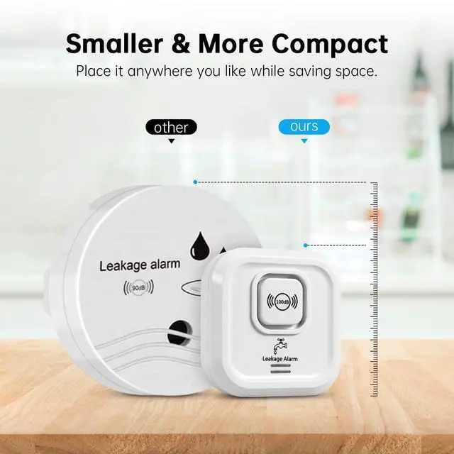 VERSATILE INSTALLATION: This water sensor alarm leak detector 65x65x30mm is designed to blend into any space. Install wirelessly or connect probes in hard-to-reach places (e.g., behind a washing machine) - no screws or drilling required.