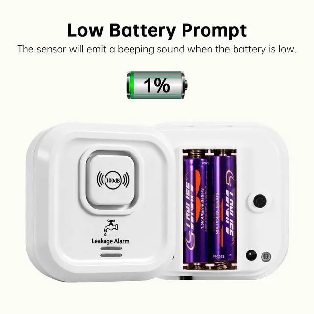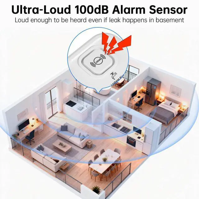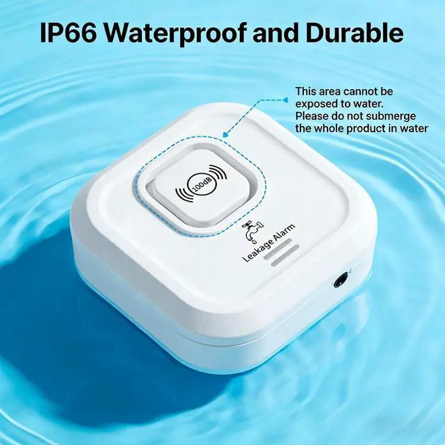 100dB ALARM + IP66 WATERPROOF: This water leak detector triggers a penetrating 100dB alarm (60 seconds continuous) loud enough to penetrate walls. ip66 rated enclosure and rust-resistant coating ensures durability in wet areas such as bathrooms, basements or under sinks.