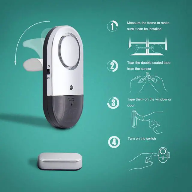 Double-sided Tape: Comes with double-sided tape to mount the alarm. The compact design allows for easily installation.