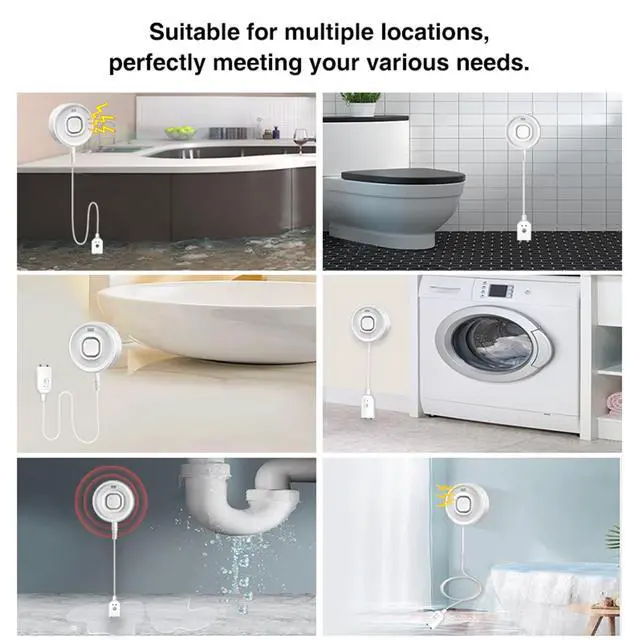 Wireless Smart Water Leak Sensor is Suitable for Kitchen, Bathroom, Basement, Toilet, Laundry Room, and any place that needs to prevent water leakage.