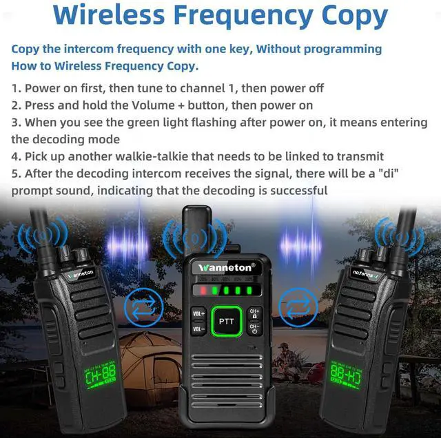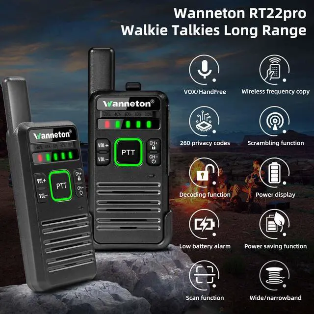 Multiple Functions: walkie talkies for adults offers a variety of features including wireless frequency replication, hands-free operation, privacy codes, scrambling, decoding, scanning, analog mode, low battery alert, power-saving, and more, all accessible via the device's menu.