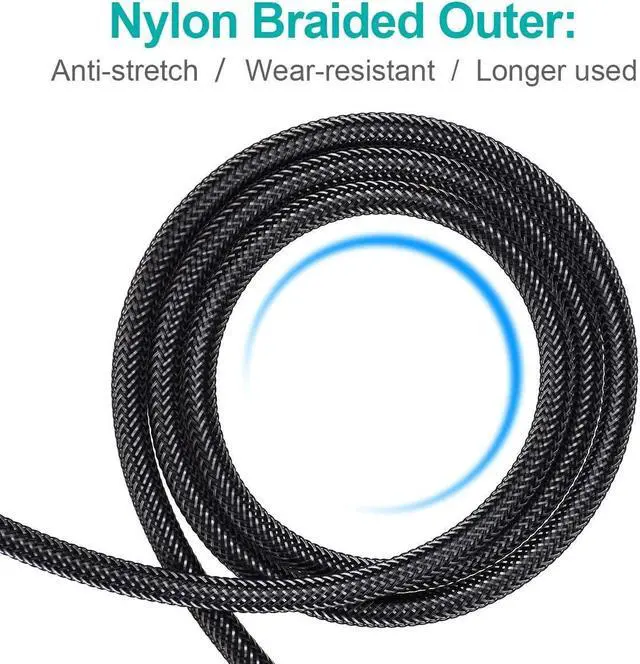 Ultra-Thick Braided Jacket: OD 6.0 nylon braided jacket makes it easier for routing, placing, and installing the cable under any circumstances.