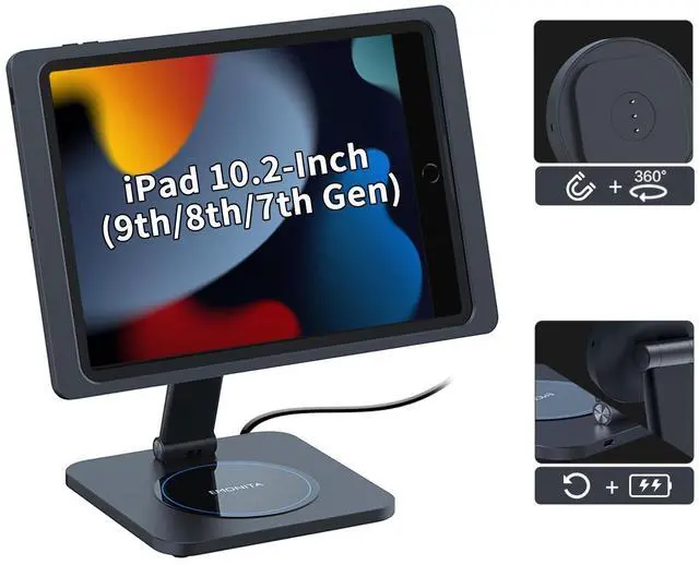 Perfect view with 360 rotation and 90 tilt, turn your iPad into a 2nd monitor in landscape or portrait mode using next to your laptop or computer. The base with rubbers to prevent sliding or harming the surface, heavy duty to hold your iPad sturdy.