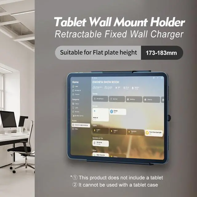 EMONITA ClipDock Wall Mount with Charger for ipad pro 11-Inch (M4) (2024 Model) Retractable Fixed Bracket Type-C Charging Stand