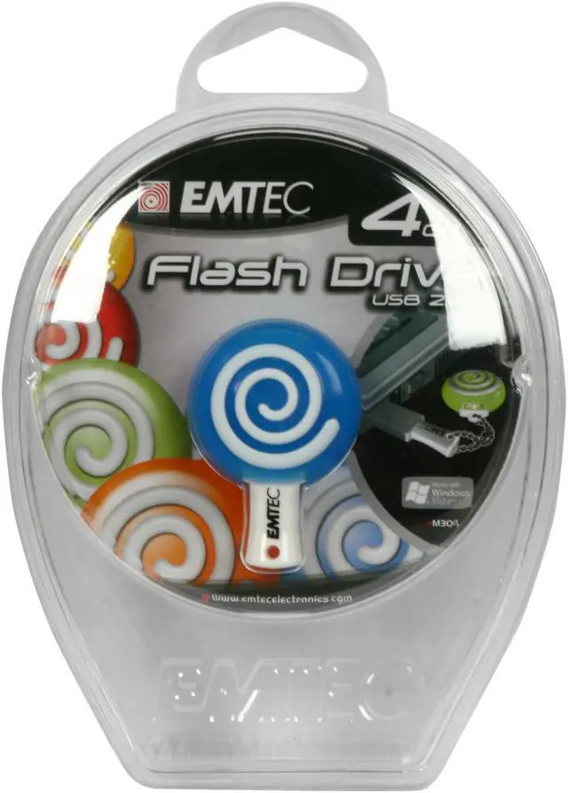 StylishThe EMTEC M300 Lollipop USB flash drive features a “Lollipop” cap with unique swirl design on a rubber casing. Included cap holder can attach to the drive with a small beaded chain, so you will never lose the cap.