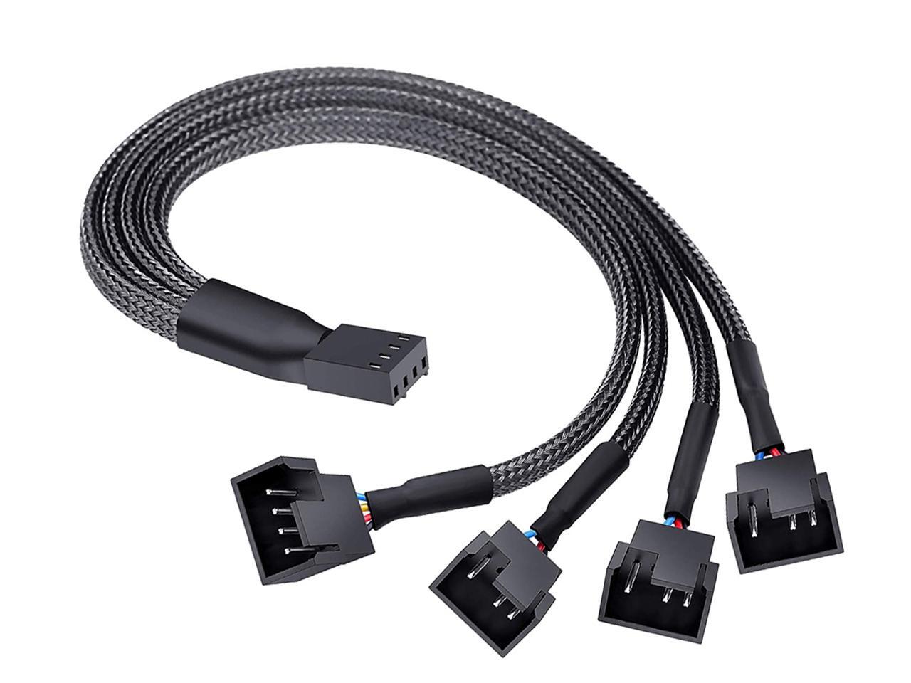 PWM Fan Splitter Cable Hub 1 to 4 Power Adpater,Motherboard PMW 4-pin Fan Sleeved Braided Y Splitter Internal Power Extension Cable for Computer CPU/Case Fan 1x4 Converter - 10 inches