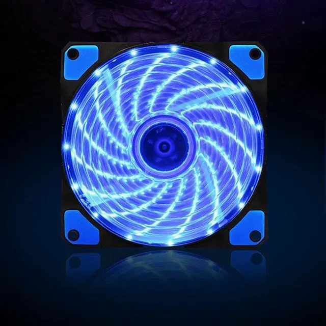 120mm Sleeve Bearing quiet cooling case fan for computer 15 leds Color LED, create a very amazing effect Combination of high efficiency heat dissipation and mute, 9pcs fan vanes, There is cut back processing on both external and internal of the fan frame to make a large amount of air and improve the heat transfer, 12CM STANDARD SIZE-Compatible with all types of chassis, Suitable for water cooling, Cold discharge light effect, CPU radiator, side through version of MOD light efficiency of fan position in cabinet, Different angles and light show different visual effects.