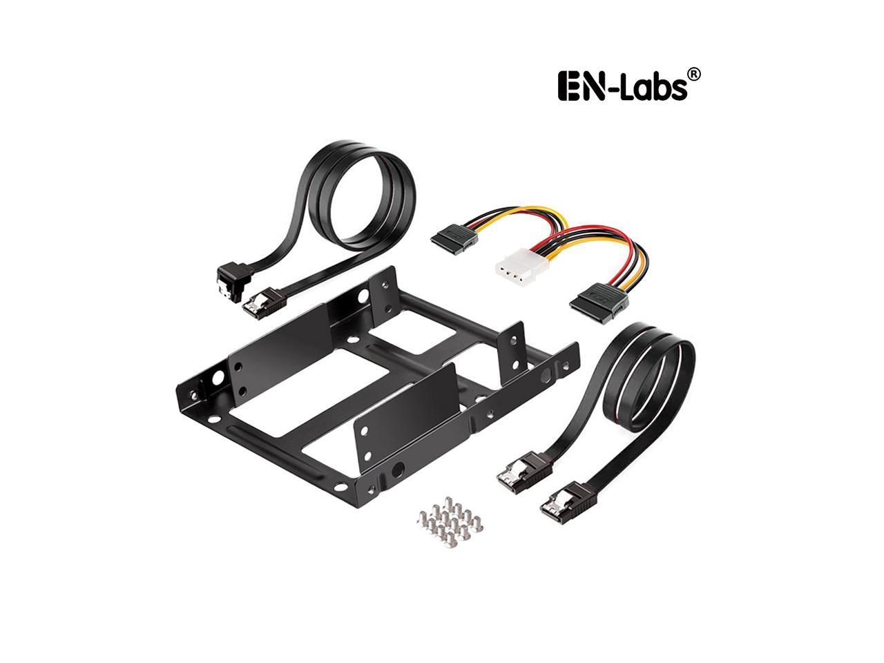 EnLabs 2X25TO35MAKIT Metal Dual 2.5" to 3.5" Hard Drive Bay Mounting Bracket w/ SATA Data Cable and Power Adatepr Cable- 2 X 2.5" to 3.5" HDD / SSD Mounting Bracket Kit - Black