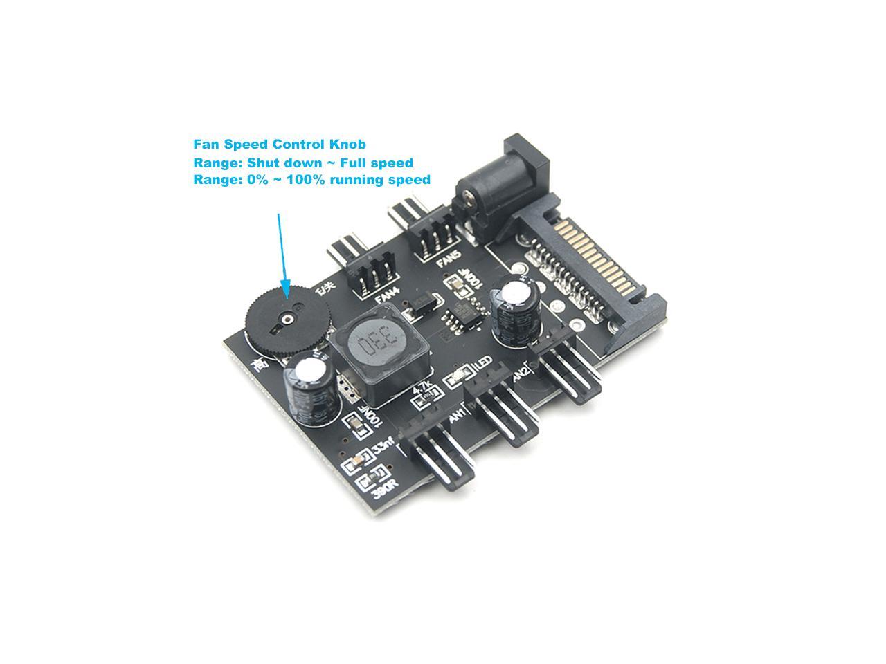 5 Channel Computer PC Case CPU Cooler 3pin cooling fan speed temperature controller, 5 Way 3 pin Fan Hub Power Supply Splitter by SATA 15 pin
