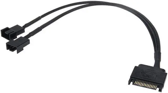 12V SATA to 2x 3pin / 4pin Fan Splitter Cable with Black Sleeved Jacket