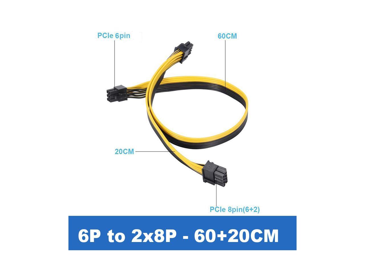 EnLabs PCIE6P28PSPL6020 PCIe 6pin to 8pin(6+2) Male to Male PCI-E Power Splitter Cable (60CM+20CM) for GPU Power Supply Breakout Board Adapter for Ethereum Mining ETH ZEC