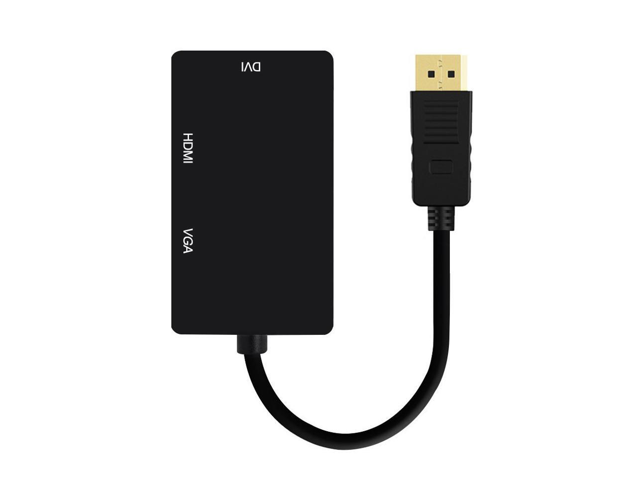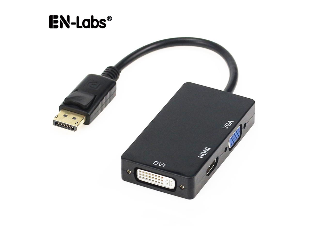 EnLabs ADDP2VDHBK 1080p DisplayPort to HDMI/DVI/VGA Converter - 3-in-i DP to HDMI/DVI/VGA Multiport Adapter Cable - 1920x1080p - Black