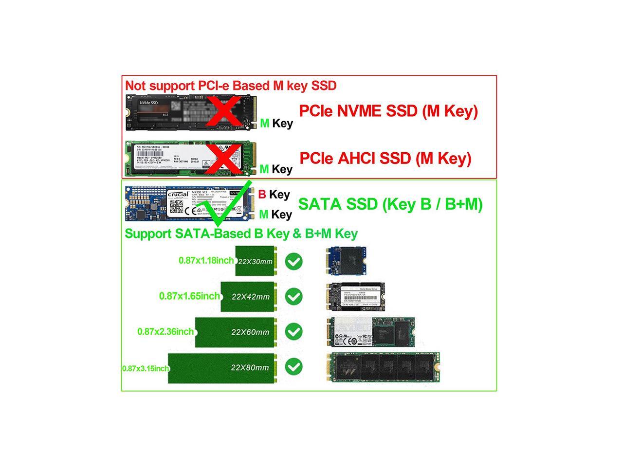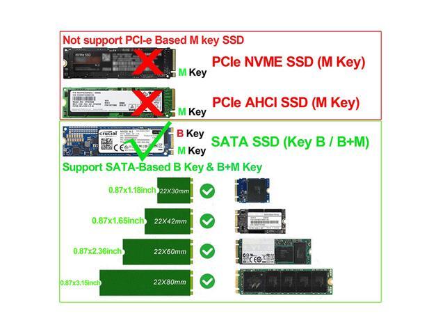 - Only fit for SATA-bus NGFF M.2 SSD with Key B/B+M