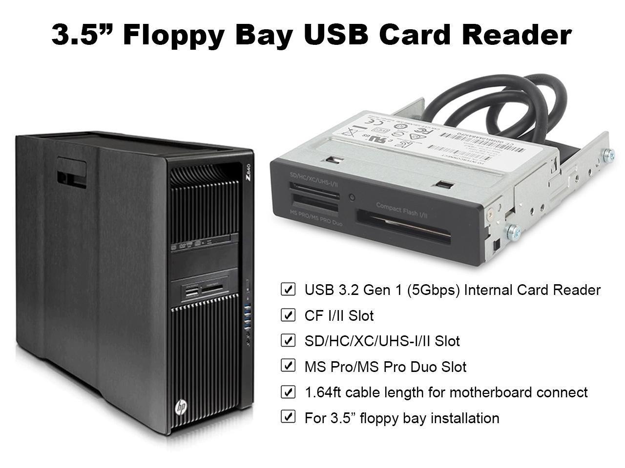 3.5" Floppy Drive Internal Card Reader USB 3.2 GEN1 5Gbps SD,CF,MS,XD Desktop Card Reader USB Flash Memory Reader Front Panel for Desktop Z240 Z440 Z640 Z840,1.64ft Cable Length