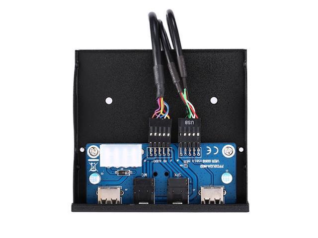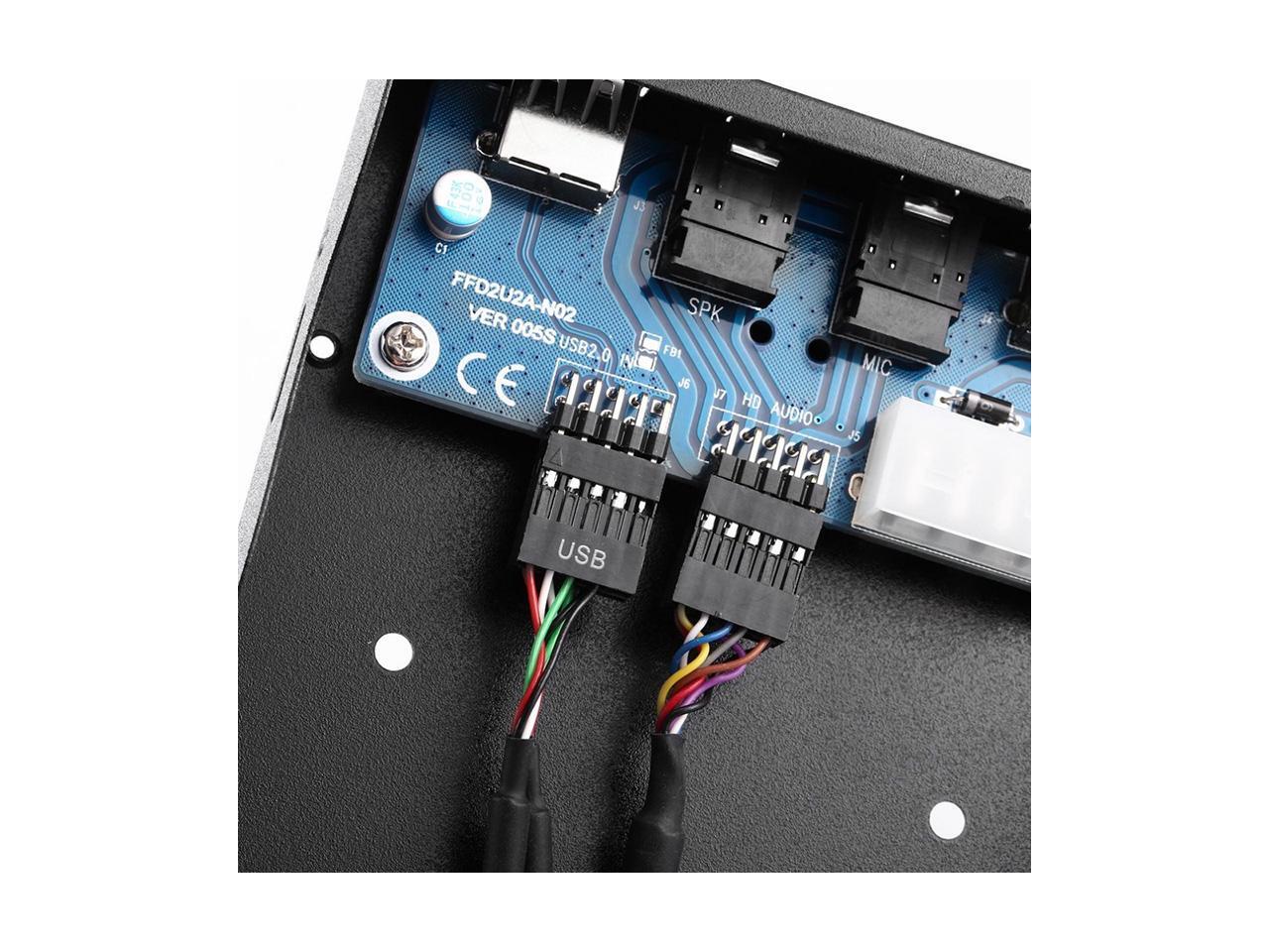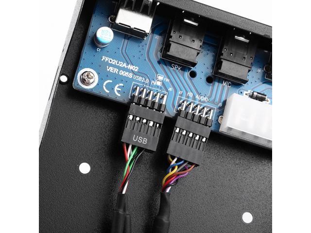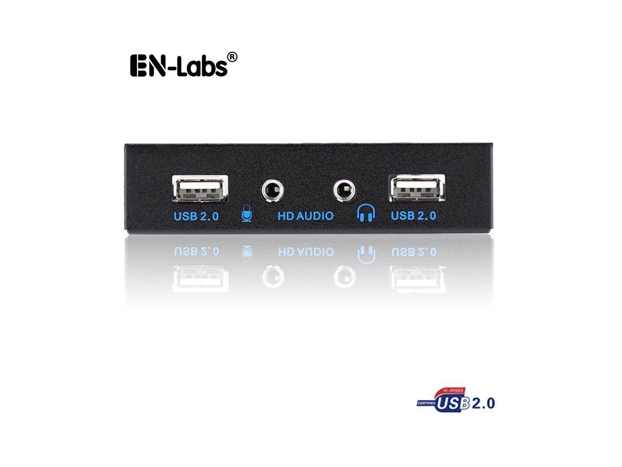 EnLabs FT35U22AM USB 2.0 Desktop PC Case 3.5" Front Panel Audio, USB 9 Pin to 2 Ports USB 2.0 Female Splitter Hub Floppy Bay Panel w/ HD Stereo Audio & Microphone - 2 Feet 9Pin Cable, Black